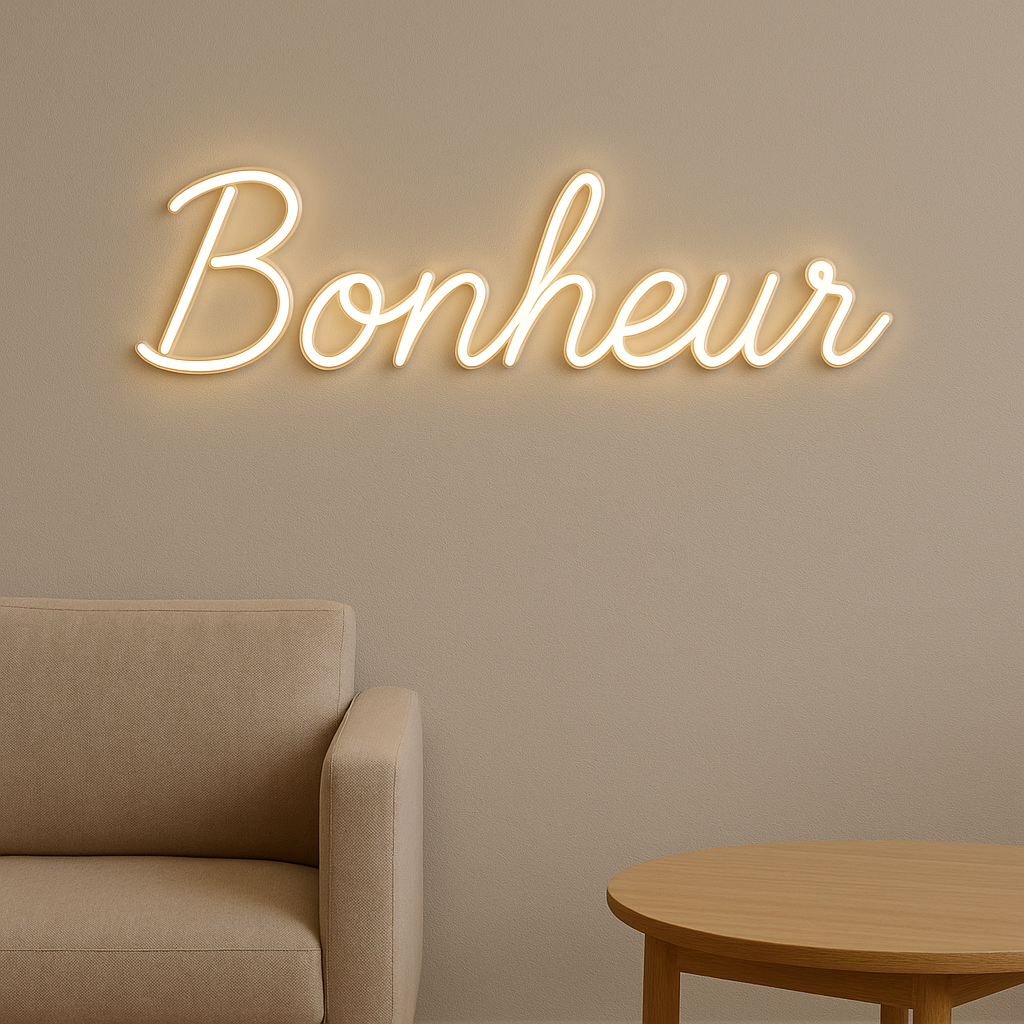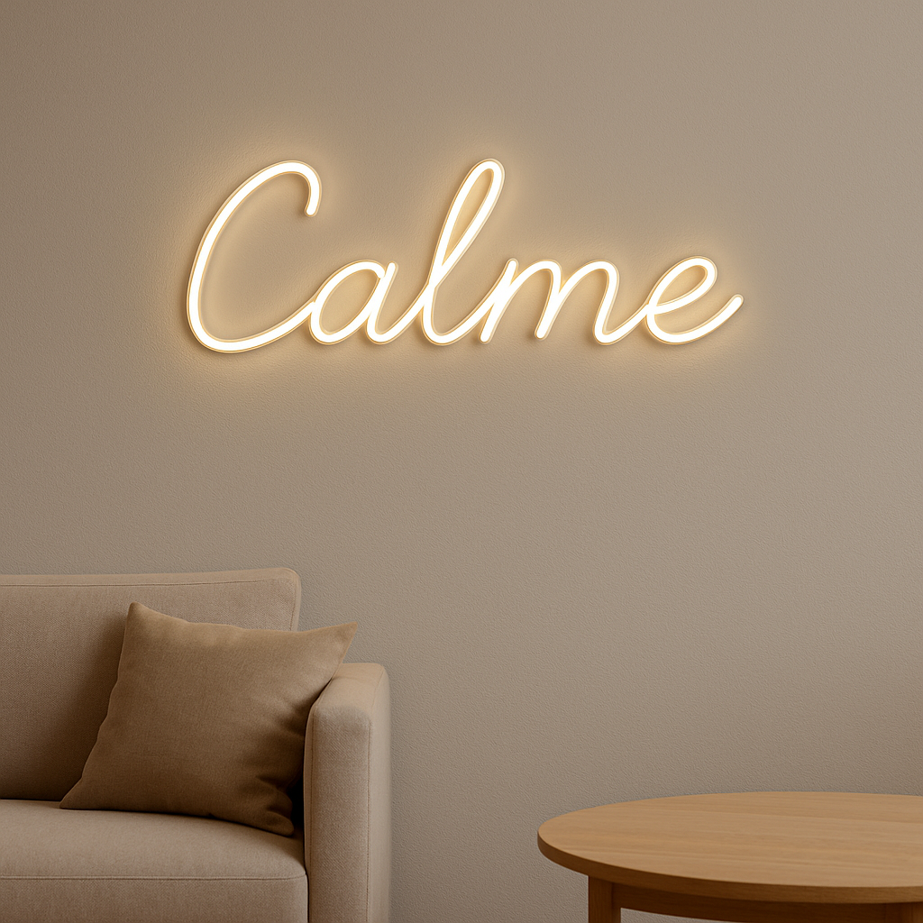 Optez pour des polices fines et arrondies, qui évoquent la fluidité. Chez Neonvia, un simple mot comme “Dream” ou “Calme” peut transformer une chambre en cocon reposant.