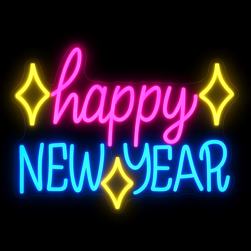Sublimez vos fêtes avec le néon LED Happy New Year. Décoration lumineuse, design moderne, qualité premium et livraison rapide. Commandez votre néon sur mesure !